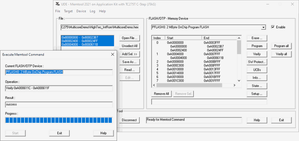 UDE® Memtool is designed for On-Chip FLASH memory programming and On-Board PCM / FLASH / OTP memory programming with microcontroller hardware systems using Infineon TriCore, AURIX
